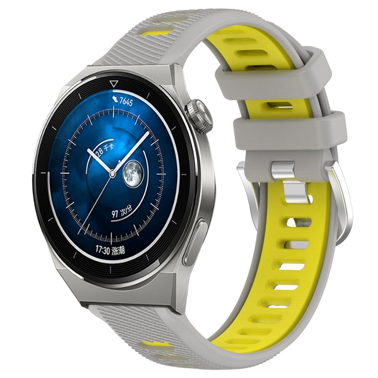 Correa de Silicona para Huawei Watch 3 Pro 22mm Deportes con Hebilla de Acero (Gris + Amarillo)