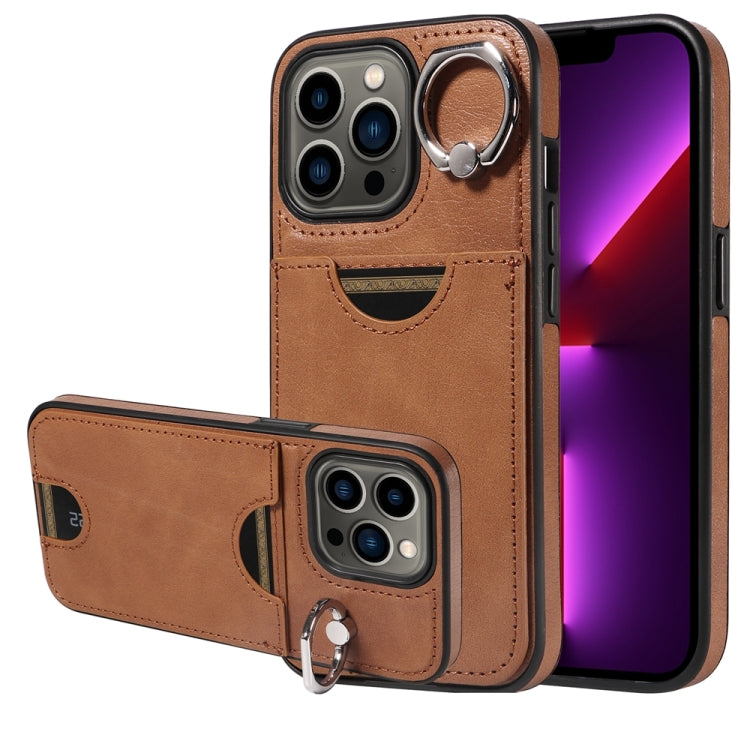 Funda para Teléfono iPhone 13 Pro Soporte Anillo Ranura Tarjeta Textura Pantorrilla (Marrón)