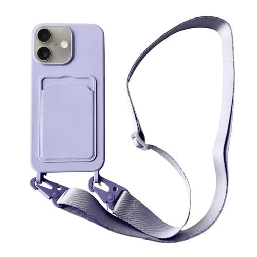 Funda de Silicona Líquida para iPhone 16 con Ranura para Tarjetas y Cordón (Morado Claro)