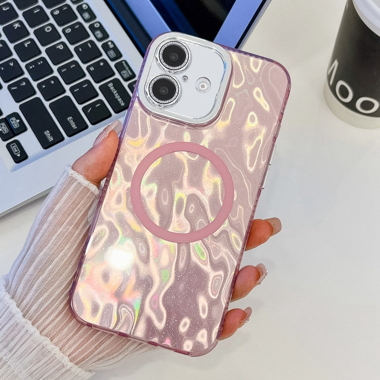 Funda de Teléfono TPU Magsafe para iPhone 16 con Película de Lente Brillo (Ondas de Agua Moradas)