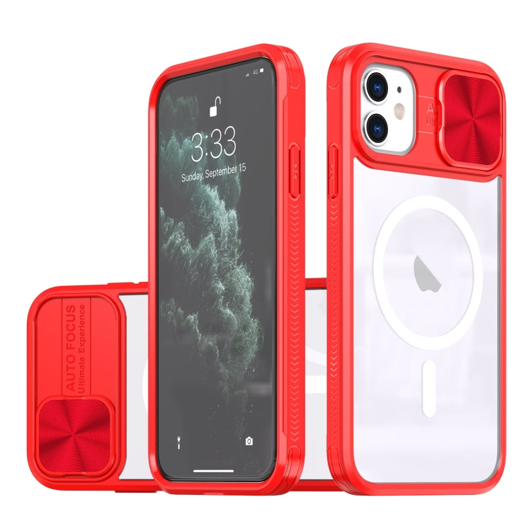 Funda para iPhone 11 con Cubierta Deslizante Acrílico Transparente PC TPU Magsafe (Rojo)