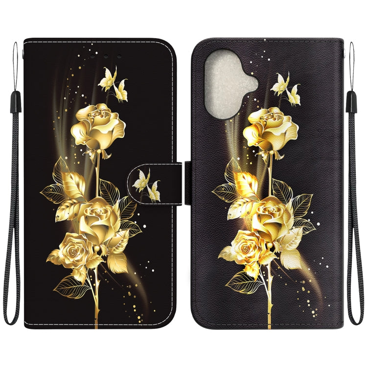 Funda de Cuero para iPhone 16 Plus con Dibujo Coloreado y Textura de Cristal (Peonía Dorada)