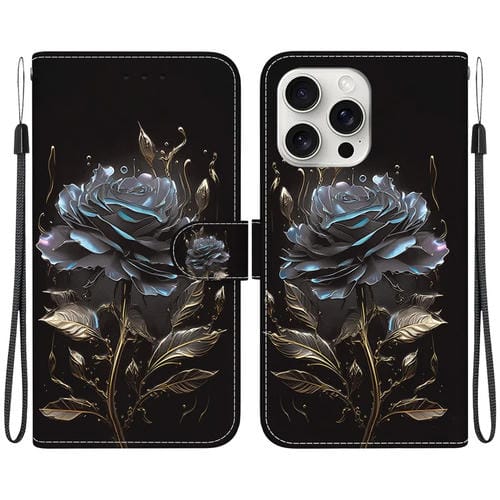 Estuche para teléfono iPhone 16 Pro Max Cuero con Dibujo Coloreado y Textura de Cristal (Rosa Negra)