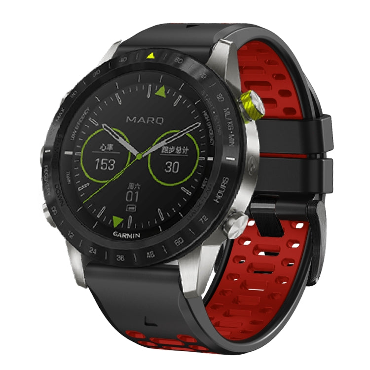 Correa de Reloj de Silicona para Garmin Fenix 7X 26mm con Orificio de Tres Filas (Rojo Negro)