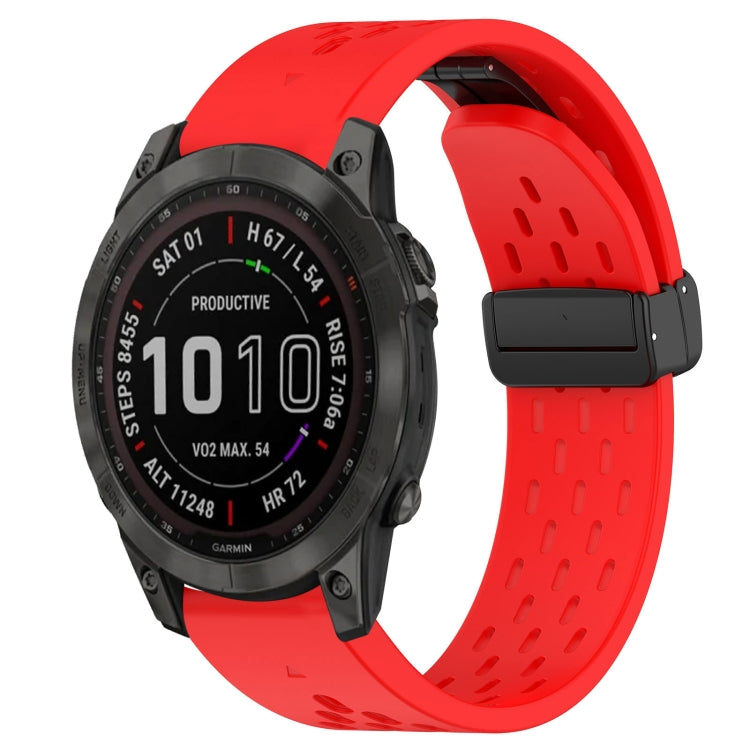 Correa de Reloj Garmin Fenix 7 Sapphire Solar 22mm Silicona con Hebilla Plegable (Rojo)