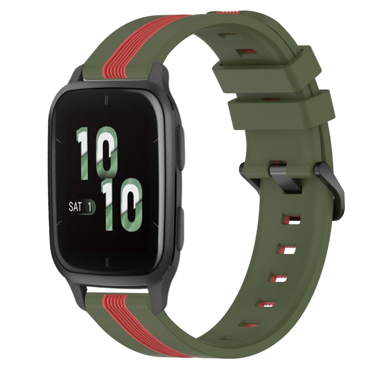 Correa de Reloj Garmin Forerunner Sq2 Silicona Dos Colores Vertical 20mm (Verde Militar + Rojo)