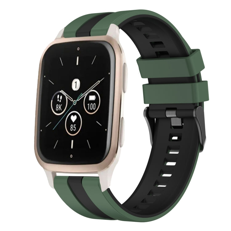 Correa de Reloj Garmin Forerunner Sq2 Silicona Dos Colores Bucle Convexo 20mm (Verde Oliva + Negro)