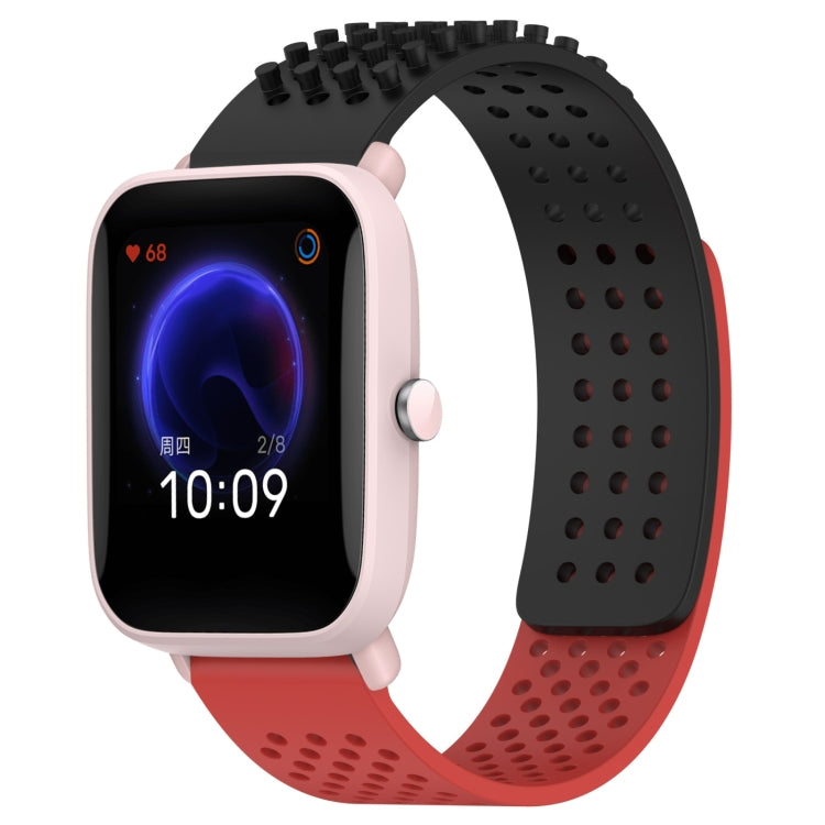 Correa de Reloj para Amazfit Pop Pro Silicona Puntos 3D Transpirables 20mm (Negro + Rojo)