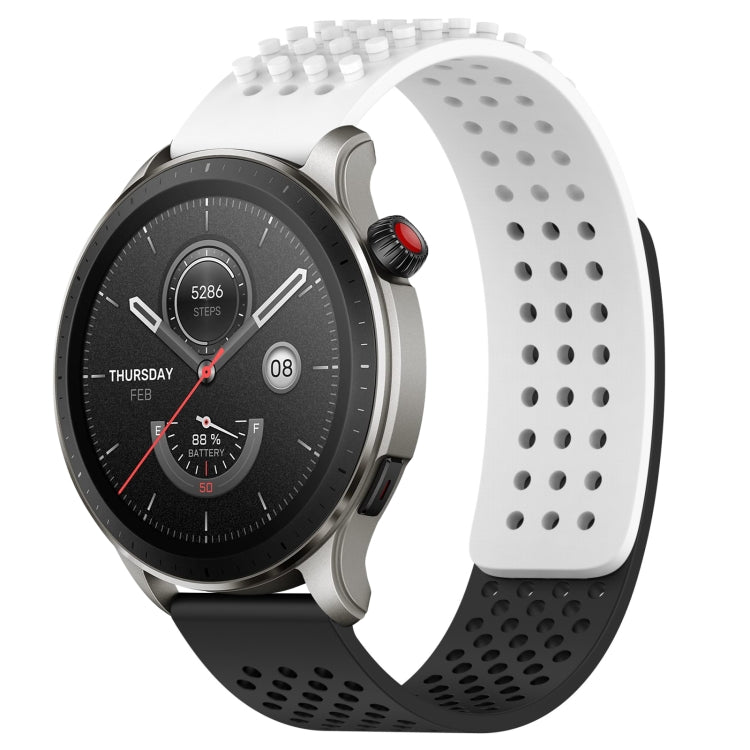 Correa de Silicona para Amazfit GTR 4 con Puntos 3D Transpirables y Orificios 22mm (Blanco + Negro)