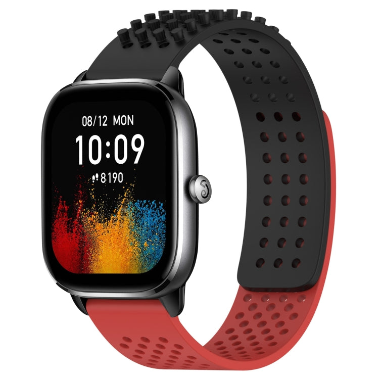 Correa de Reloj silicona Amazfit GTS 4 Mini puntos 3D transpirable orificios 20mm (Negro + Rojo)