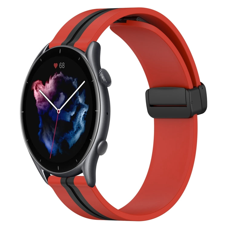 Correa de Reloj Amazfit GTR 42mm 20mm Silicona con Cierre Magnético Plegable (Rojo + Negro)