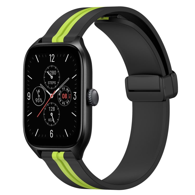 Correa de Silicona para Amazfit GTS 4 20mm con Cierre Magnético Plegable (Negro + Verde Lima)