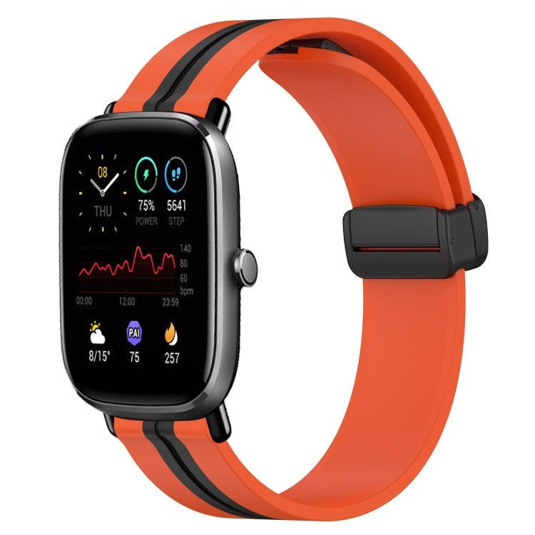 Correa de Reloj para Amazfit GTS 4 20mm Silicona con Cierre Magnético Plegable (Naranja + Negro)