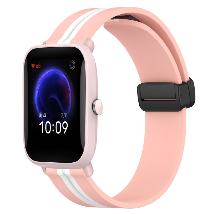 Correa de Reloj para Amazfit Pop 20mm Silicona con Cierre Magnético Plegable (Rosa + Blanco)