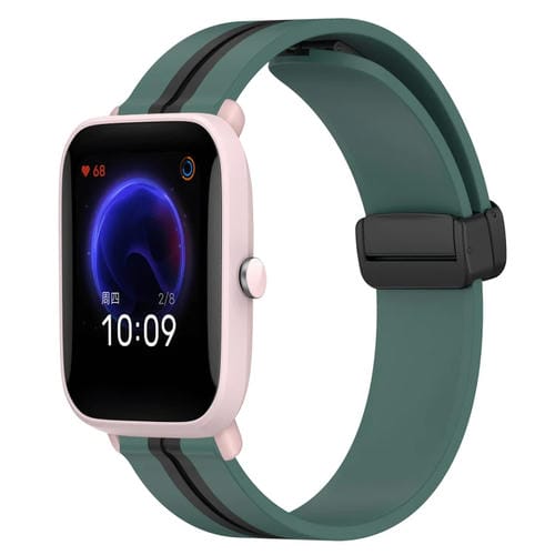 Correa de Reloj Amazfit Pop Pro 20mm Silicona con Cierre Magnético Plegable (Verde Oliva + Negro)