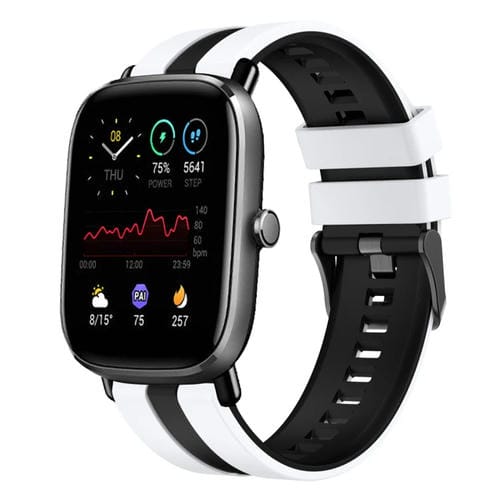 Correa de Reloj Amazfit Pop Silicona Deportiva Dos Colores 20mm (Blanco + Negro)