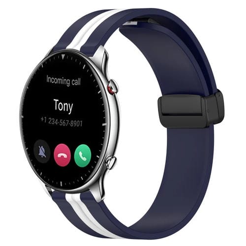 Correa de Reloj Amazfit GTR 2 22mm Silicona con Cierre Magnético Plegable (Azul Medianoche + Blanco)