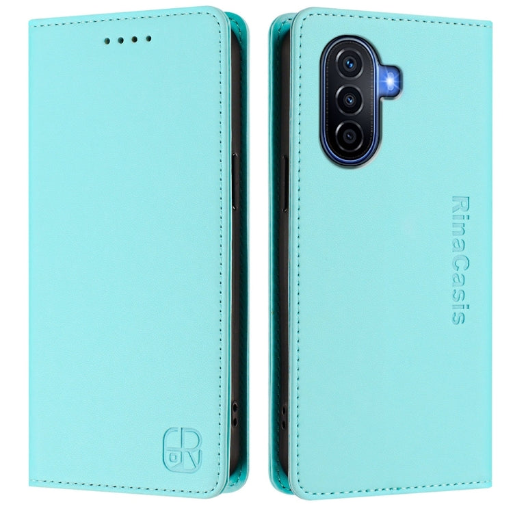Funda de Cuero con Doble Pliegue y Succión Magnética Rfid para Huawei Mate 70 Rc01 (Verde Menta)