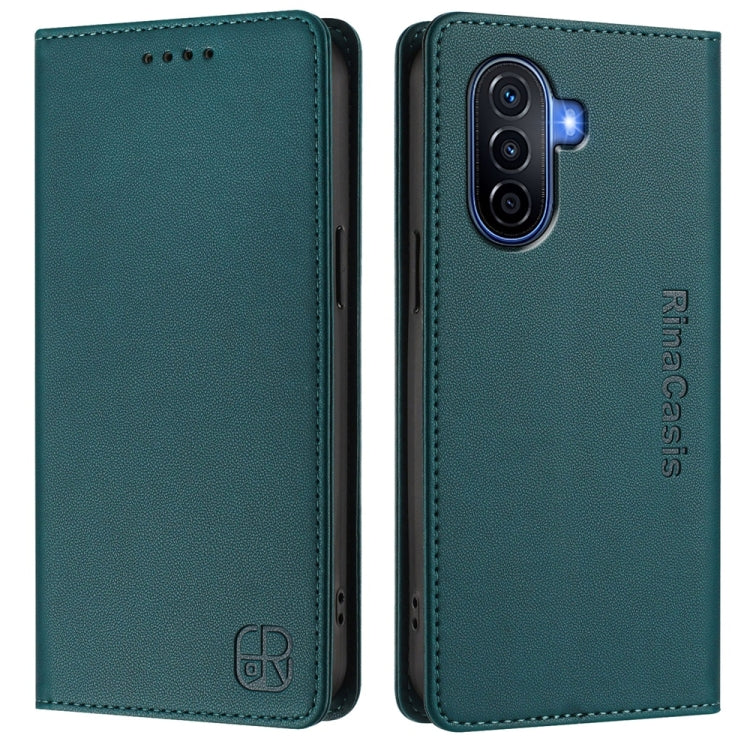 Funda de Cuero con Doble Pliegue y Succión Magnética Rfid para Huawei Mate 70 Rc01 (Verde Oscuro)