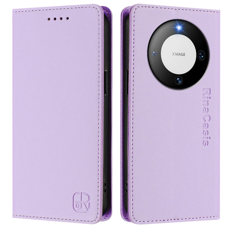 Funda de Cuero con Doble Pliegue y Succión Magnética RFID para Huawei Mate 60 Rc01 (Morado Claro)