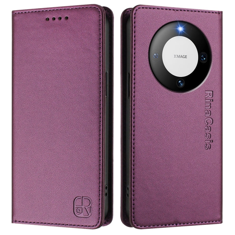Funda de Cuero con Doble Pliegue y Succión Magnética Rfid para Huawei Mate 60 Rc01 (Violeta)