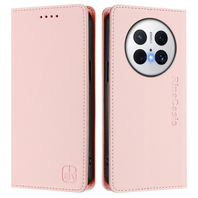 Funda de Cuero con Doble Pliegue y Succión Magnética para Huawei Mate 70 Pro Rc01 (Rosa)