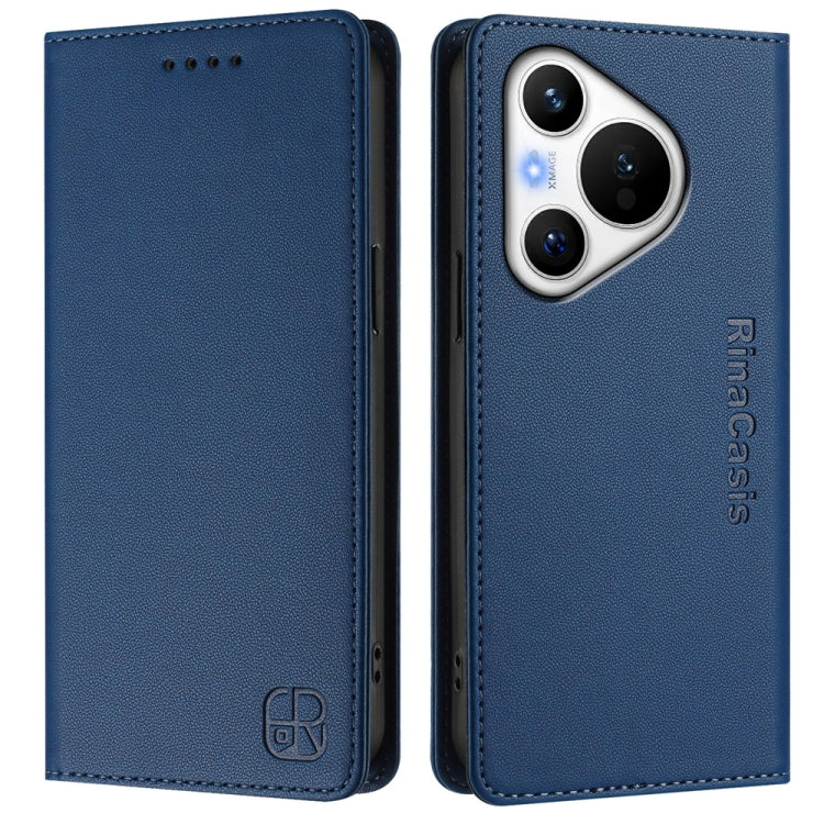 Funda de Cuero con Doble Pliegue y Succión Magnética Rfid para Huawei Pura 70 Rc01 (Azul Oscuro)