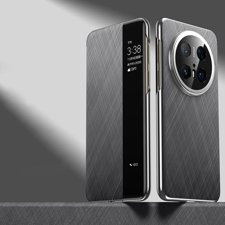 Funda para Teléfono Huawei Mate 70 Pro / 70 Pro+ Smart View Window Cuero Liso Pintura PC (Gris)