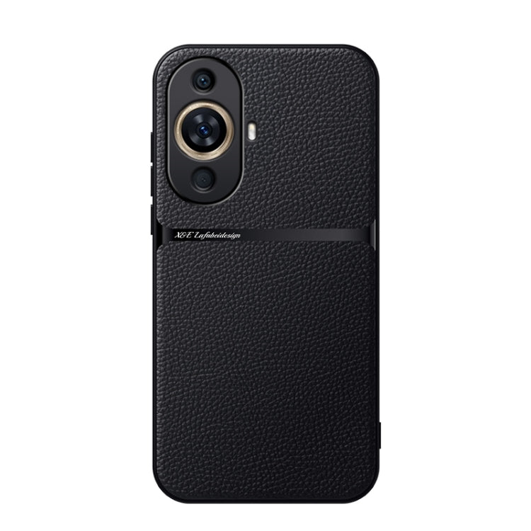 Funda para Teléfono Huawei Pura 70 Piel de Lichi Cobertura Total Magnética Negra