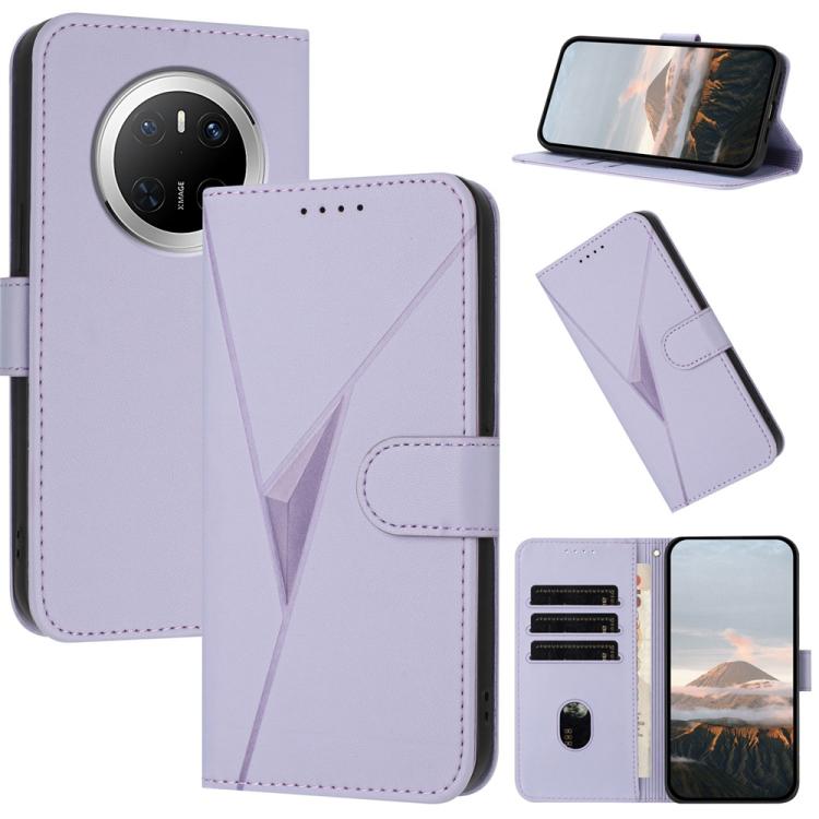 Funda de Cuero con Cierre de Hebilla y Diseño Triangular para Huawei Mate 70 (Morado Claro)