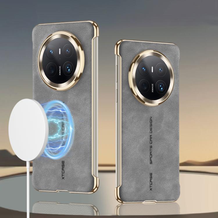 Funda para Teléfono Gkk Cuero Galvanizado sin Bordes con Magsafe para Huawei Mate 70 Pro+ (Gris)