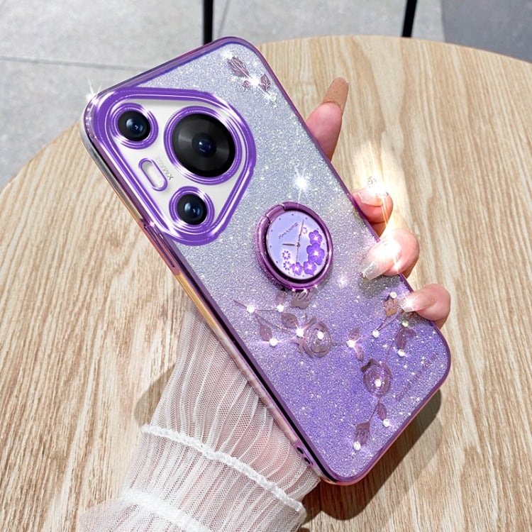 Funda para Huawei P70 Pro Gradient Glitter Immortal Flower Ring con Todo Incluido (Púrpura)