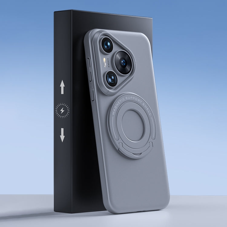 Funda para Huawei Pura 70 Ultra Frosted Magsafe con Soporte de Anillo Magnético para Teléfono (Gris)