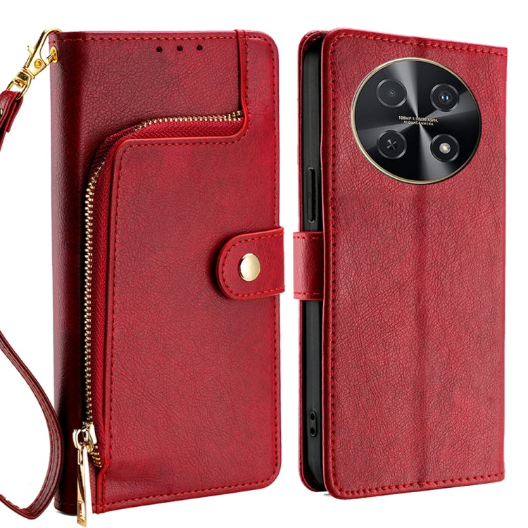 Funda de Cuero para Huawei Nova 12I 4G con Bolsa y Cremallera (Rojo)