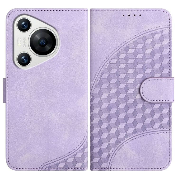 Funda de Cuero Huawei Pura 70 Yx0060 con Relieve y Cabeza de Elefante con Cordón (Púrpura Claro)