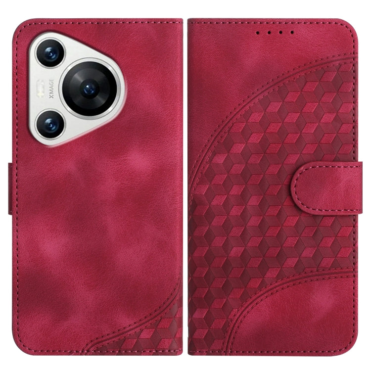 Funda de Cuero para Huawei Pura 70 Yx0060 con Relieve y Cabeza de Elefante con Cordón (Rojo Rosa)