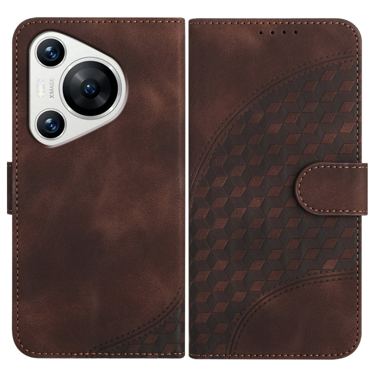 Funda de Cuero Huawei Pura 70 Yx0060 con Relieve y Cabeza de Elefante con Cordón (Café)