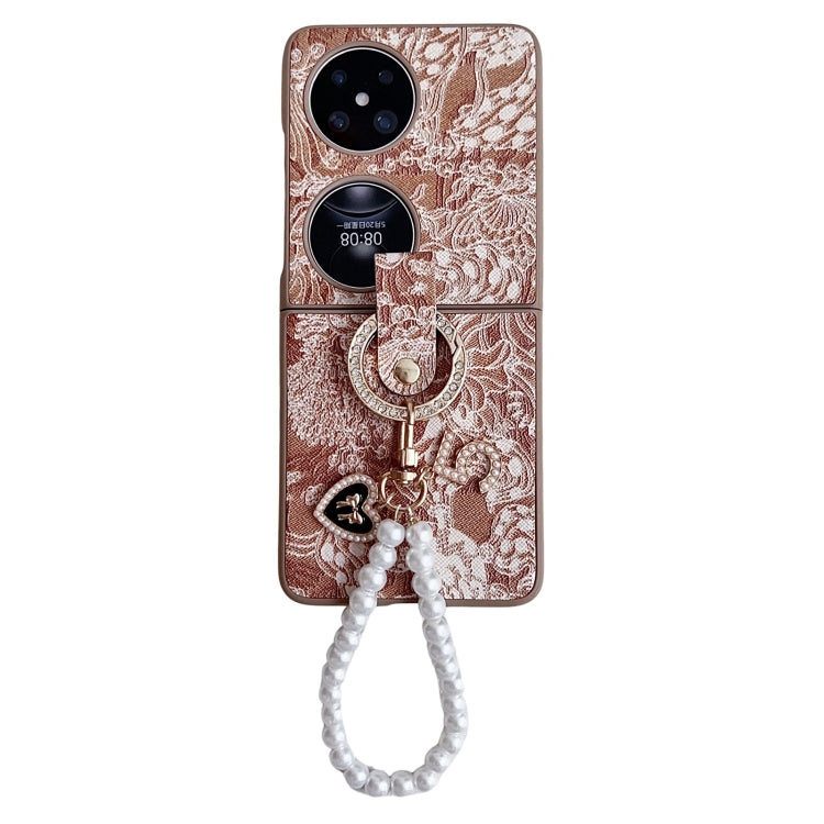 Funda para Huawei P50 Cobertura Total Bordado con Cadena de Cuentas de Anillo (Naranja)