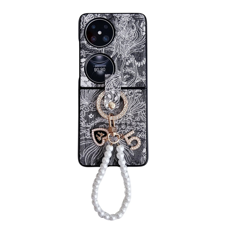 Estuche para Huawei Pocket 2 Cobertura Total con Bordado y Cadena de Cuentas de Anillo (Negro)