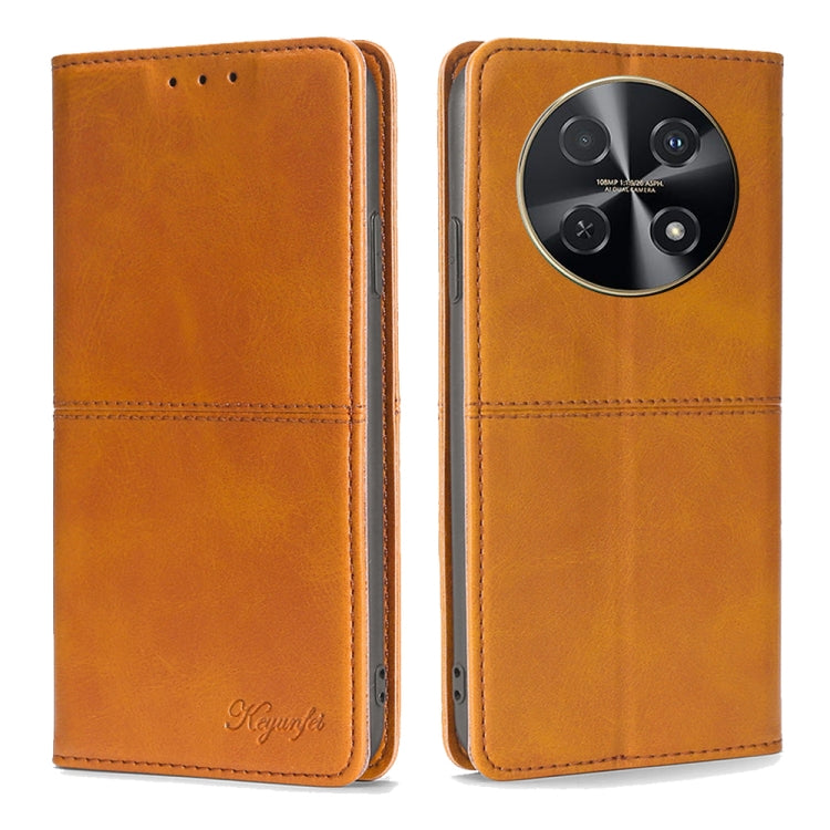 Funda para Huawei Nova 12I 4G de Cuero Magnético con Textura de Vaca (Marrón Claro)