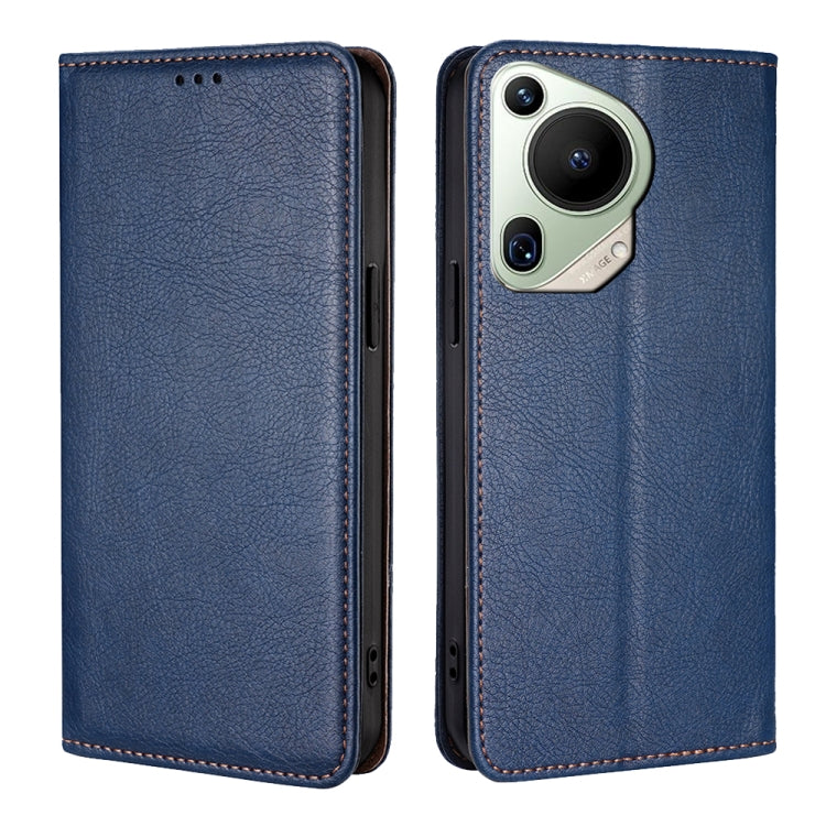 Funda para Huawei Pura 70 de Cuero Magnético con Aceite Ultra Brillante (Azul)