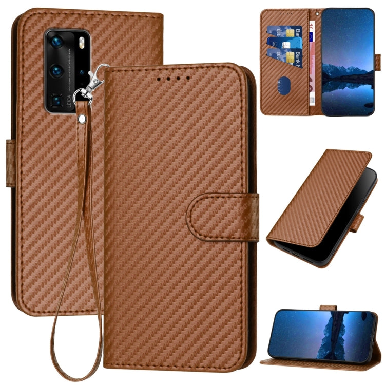 Funda de Cuero para Huawei P40 Pro Yx0070 con Hebilla de Fibra de Carbono y Cordón (Café)