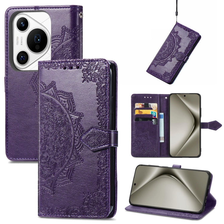 Funda para Huawei Pura 70 Pro+ de Cuero con Relieve de Flor de Mandala (Púrpura)