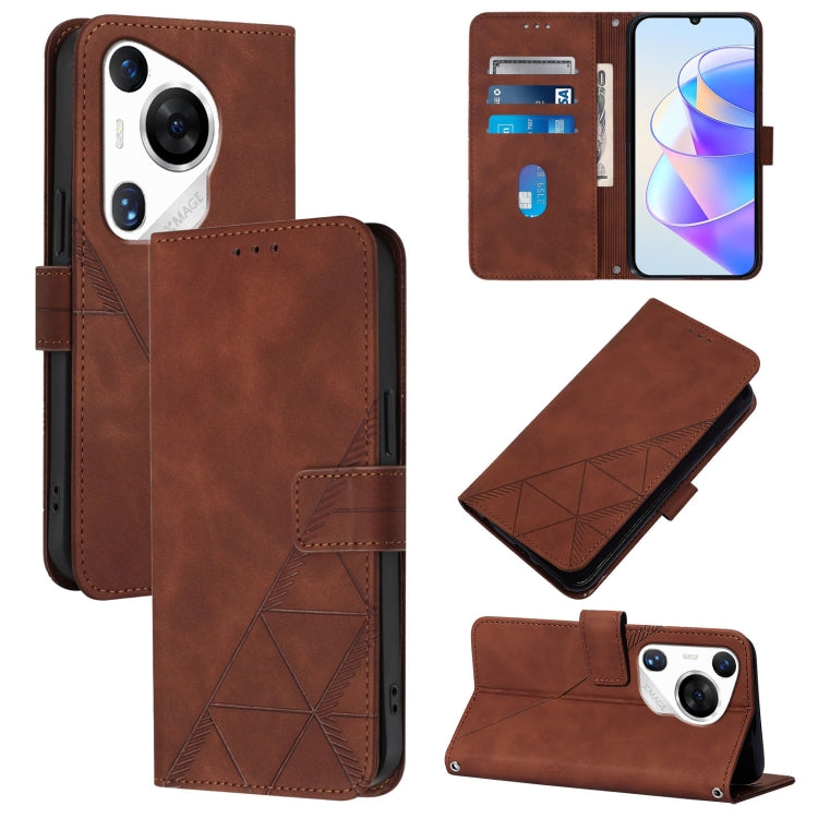Funda de Cuero Huawei Pura 70 Pro Crossbody con Tapa en Relieve 3D (Marrón)