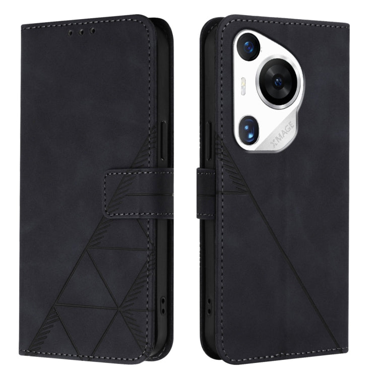 Funda de Cuero para Huawei Pura 70 Pro Crossbody con Tapa en Relieve 3D (Negro)
