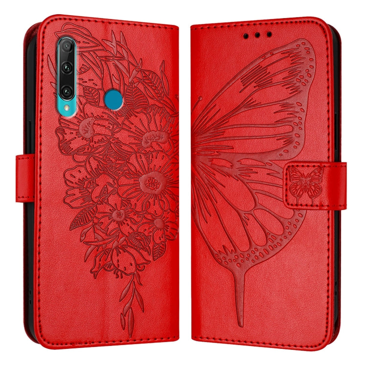 Funda de Cuero para Huawei Enjoy 9S P Smart P Smart+ (2019) con Mariposa en Relieve (Rojo)