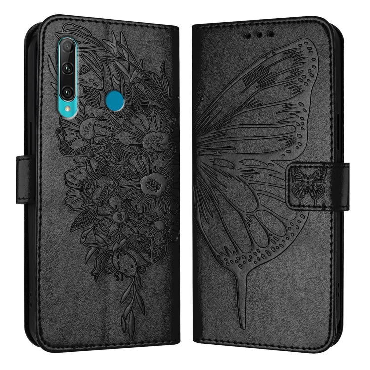 Funda de Cuero para Huawei Enjoy 9S P Smart P Smart+ (2019) con Mariposa en Relieve (Negro)