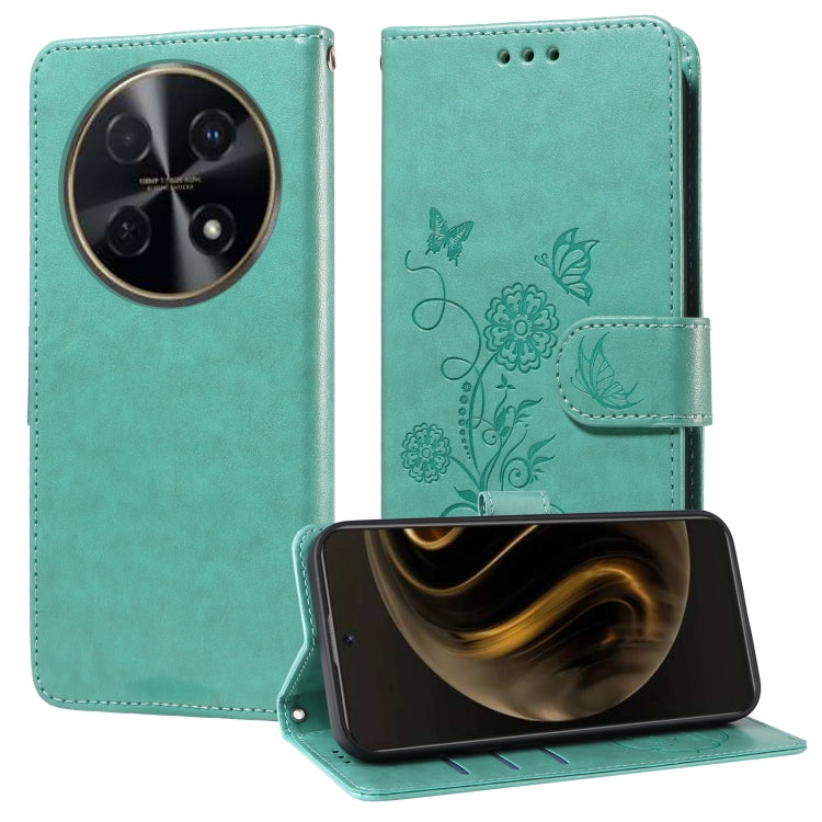 Funda de Cuero Huawei Nova 10 Pro con Diseño de Mariposas y Flores en Relieve (Verde)