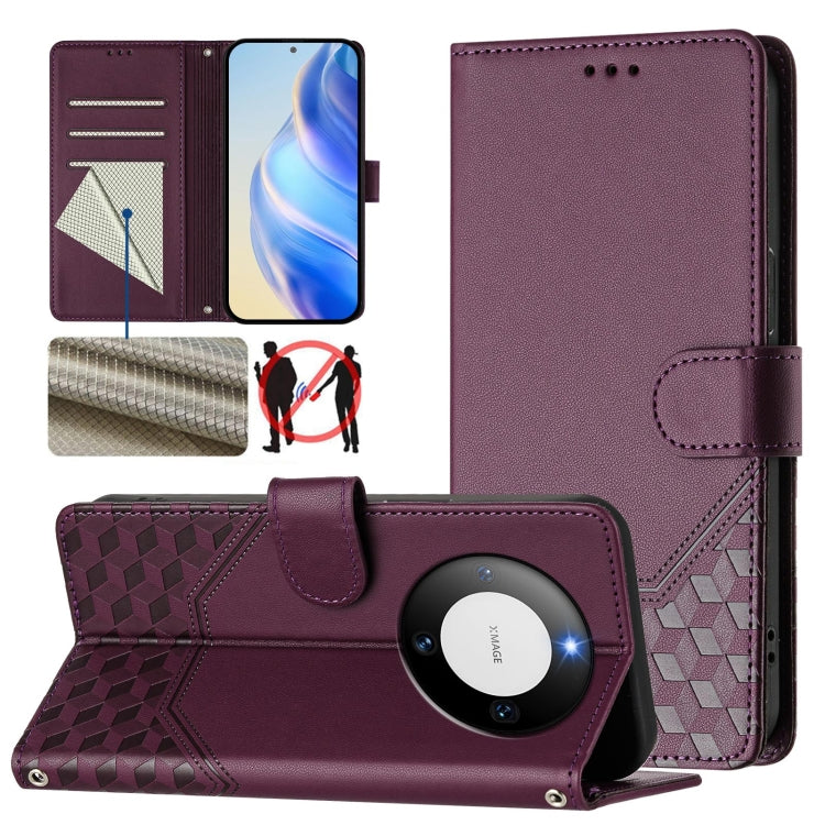 Funda de Cuero Rfid con Relieve en Panal para Huawei Mate 60 Pro y Mate 60 Pro+ (Violeta)
