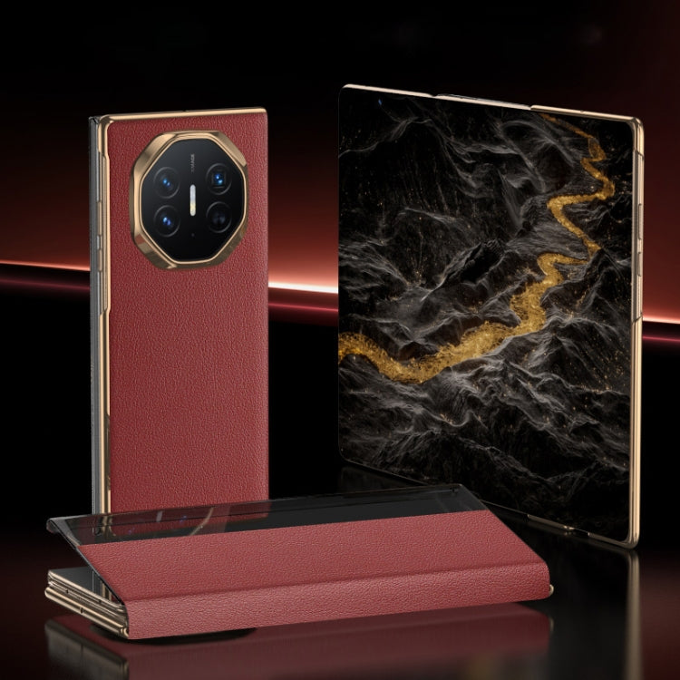 Funda de Cuero con Ventana Lateral Inteligente para Huawei Mate Xt Ultimate (Rojo Oscuro)